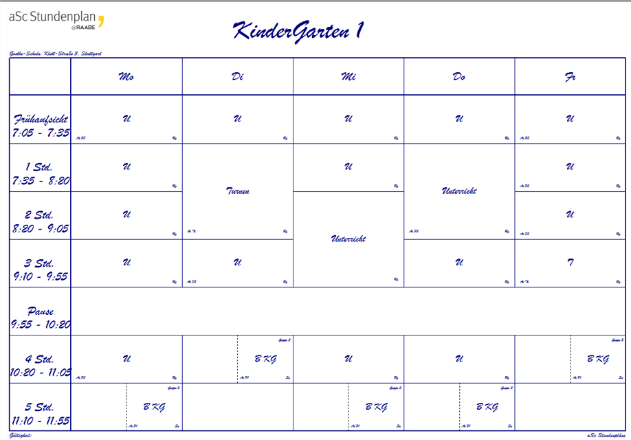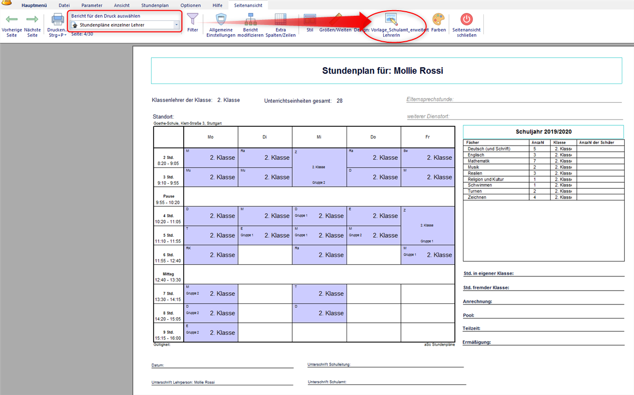 Wir haben auch ein Design Schulamt mit Unterschriftenfeld und Stundentabelle für Lehrerpläne, das wir Ihnen gerne zur Verfügung stellen: