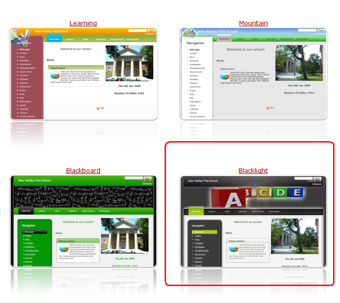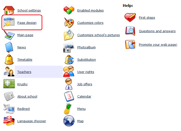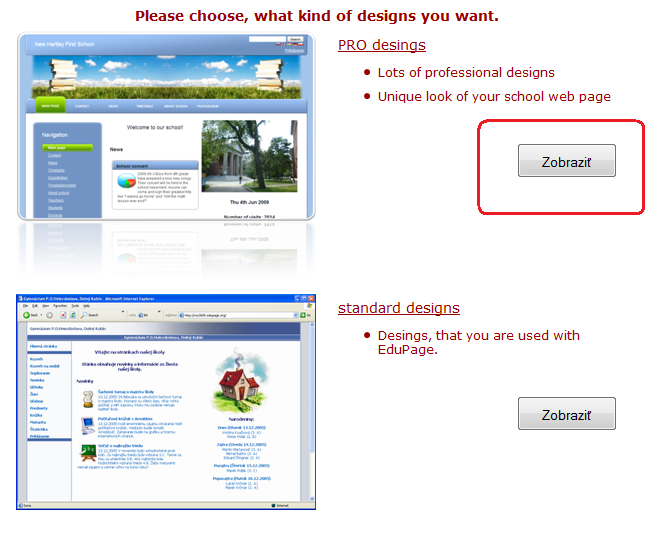 Po objednaní balíka EduPage PRO si môžete vybrať jeden z EduPage PRO dizajnov. Pre zobrazenie zoznamu všetkých voľných dizajnov, prihláste sa do vášho EduPage ako administrátor a kliknite na link "Dizajn stránok".