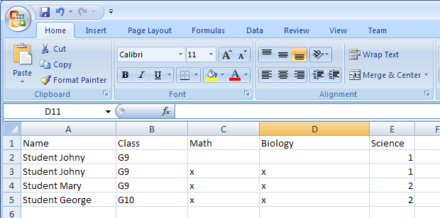 You can click the column header to specify that the column holds student names or class names in case the software hasn't autodetected them correctly.