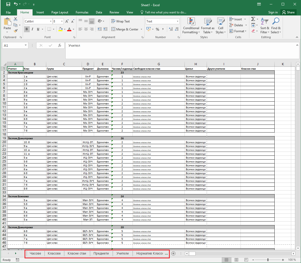 Мога ли да прехвърлям часове, учители, учебни предмети в MS Excel?