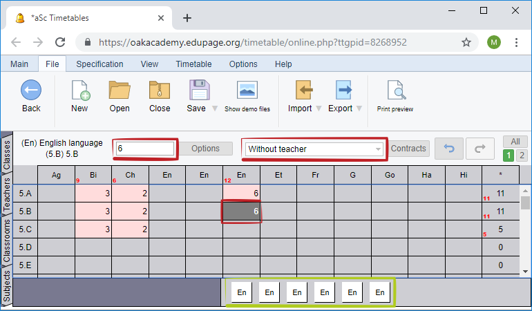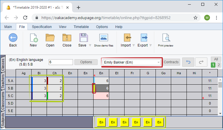3. Once you know you can assign a teacher that will teach this lesson. Simply select the lesson and type first letter of this teacher or click into the combobox: