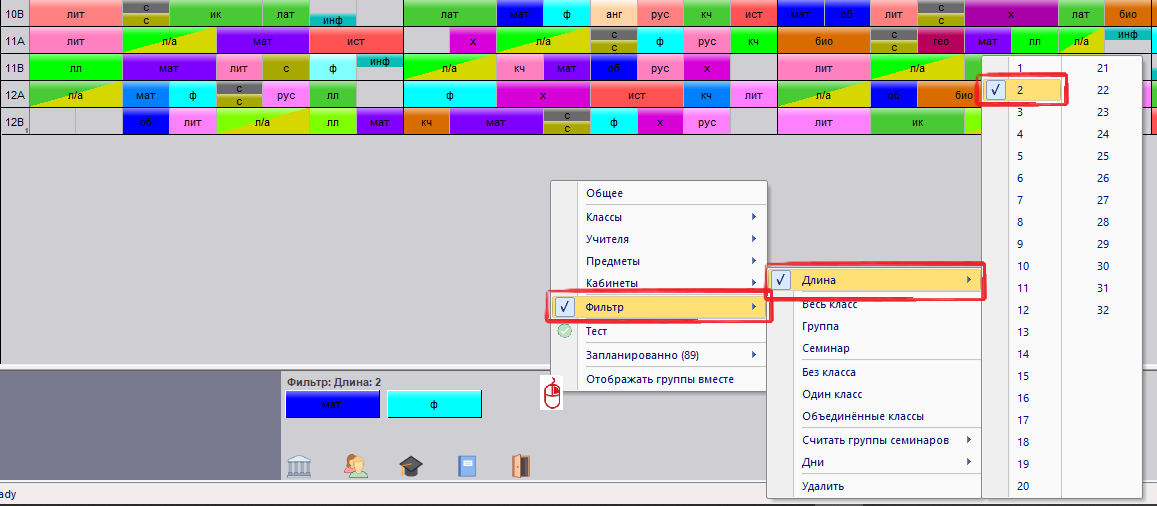 Как фильтрировать карточки уроков в зоне неразмещенных уроков