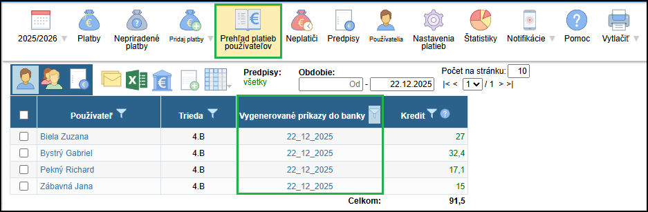 UPOZORNENIE. Od októbra 2025 je pri platbách povinný údaj názov účtu príjemcu, preto je dôležité najskôr skontrolovať, či máte tieto názvy uložené pri používateľoch. Ako zistím ktorí používatelia majú zadaný názov bankového účtu?
