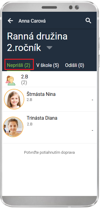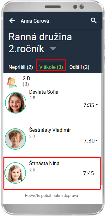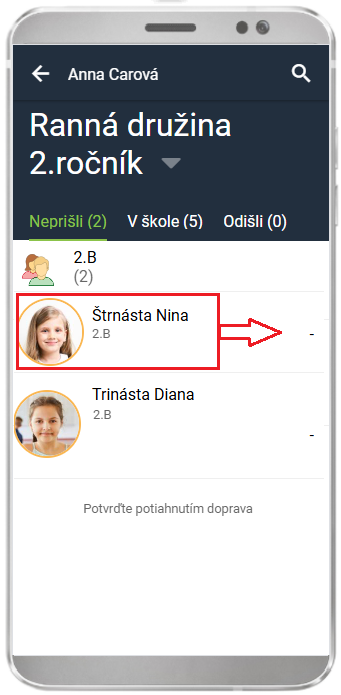 Ako zadať príchod žiaka do rannej družiny v mobilnej aplikácii