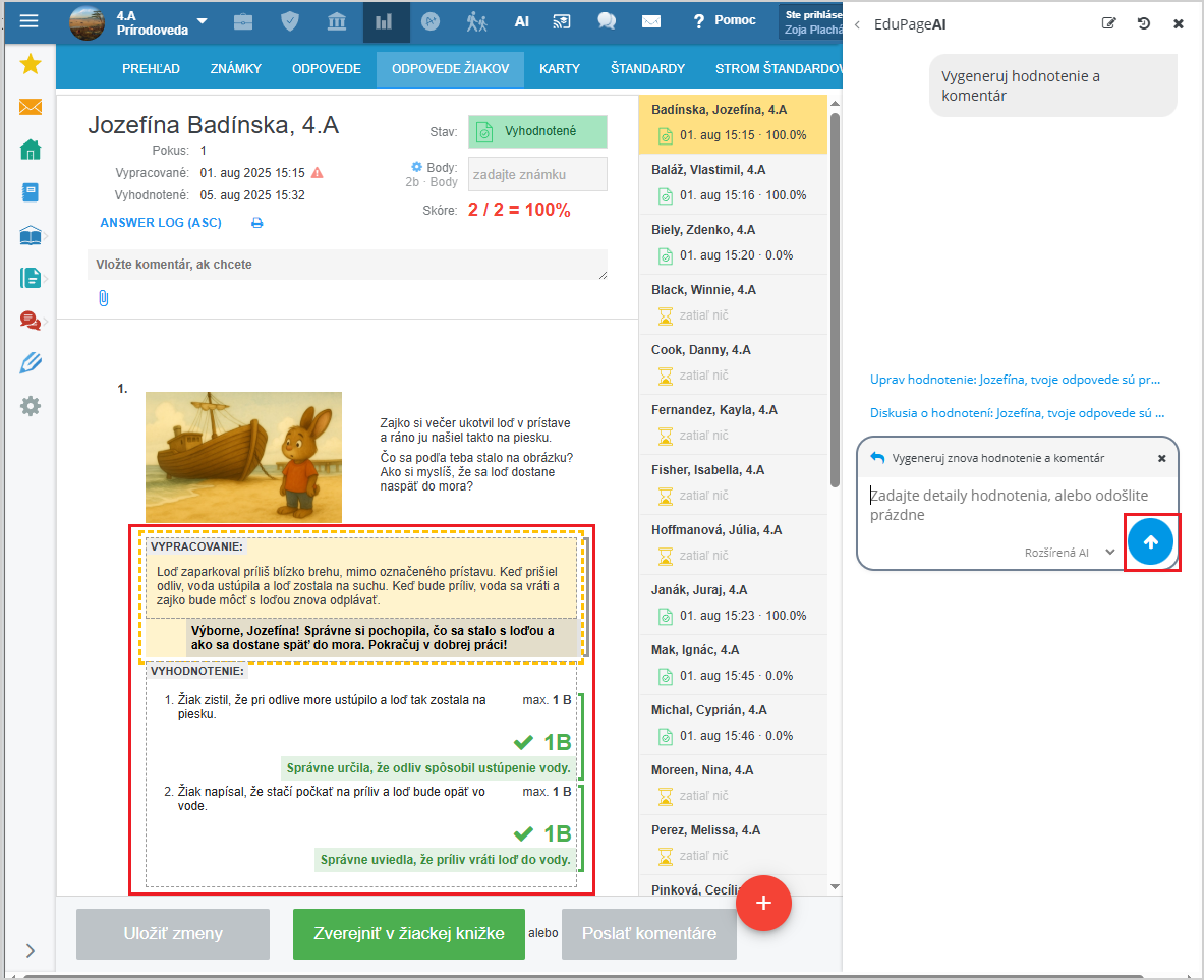 Ako vie EduPage AI vyhodnotiť žiakom odfotené a odovzdané vypracovanie otvorenej otázky?
