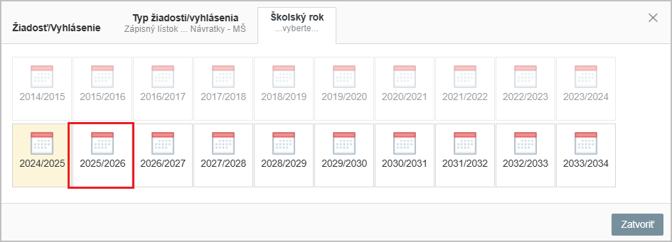 Vyberte školský rok, na ktorý na stravovanie prihlasujete svoje dieťa.