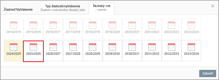 Vyberte školský rok, na ktorý na stravovanie prihlasujete svoje dieťa.