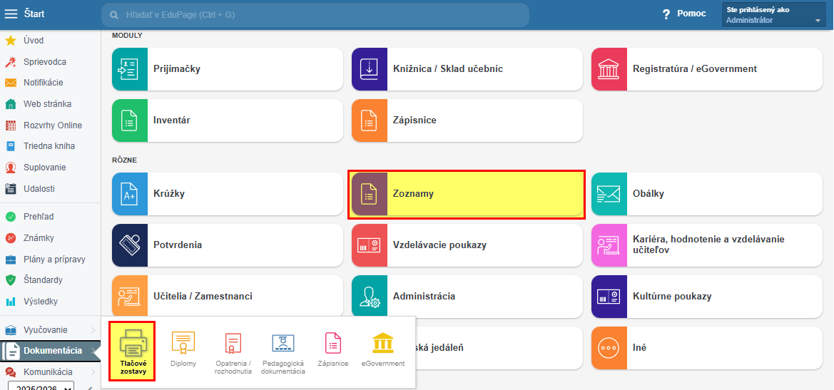 Prílohy nájdete v tlačových zostavách -> Zoznamy: