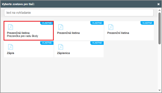 Po zverejnení zápisnice je prezenčná listina viditeľná pre učiteľov a zriaďovateľa. Rodičia prezenčnú listinu nevidia.