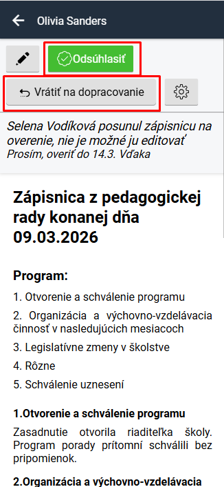 Kliknutím na notifikáciu sa Vám otvorí zápisnica. Môžete ju skontrolovať.