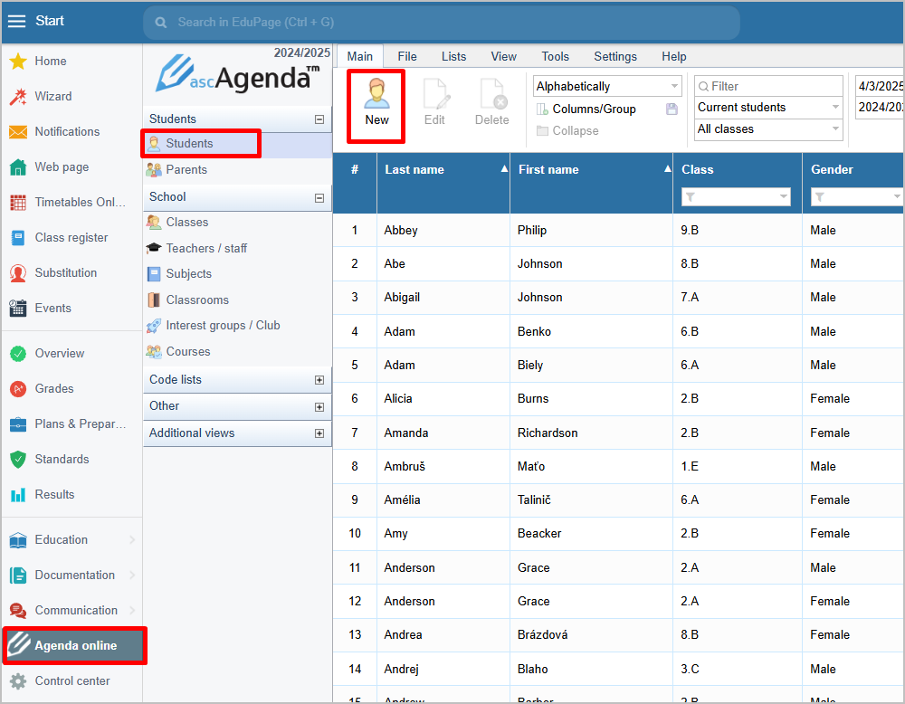 To input students data into EduPage,or add an individual student select "Wizard" on the main page.
