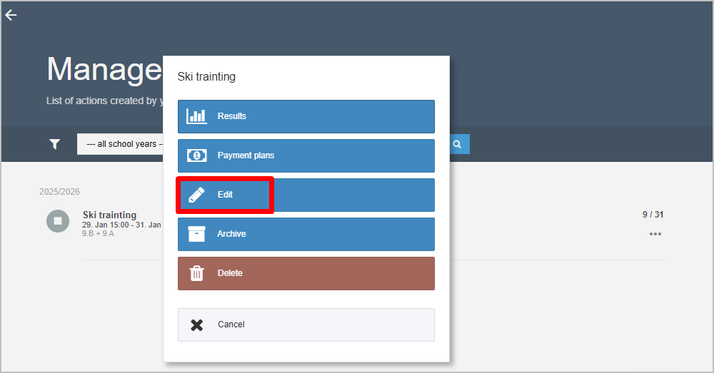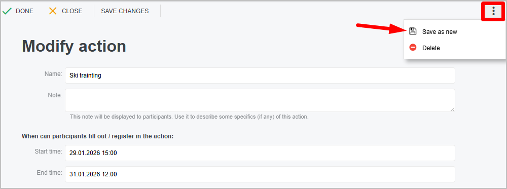Then open the copied sign‑up event / survey, change the survey completion dates and any other necessary information.