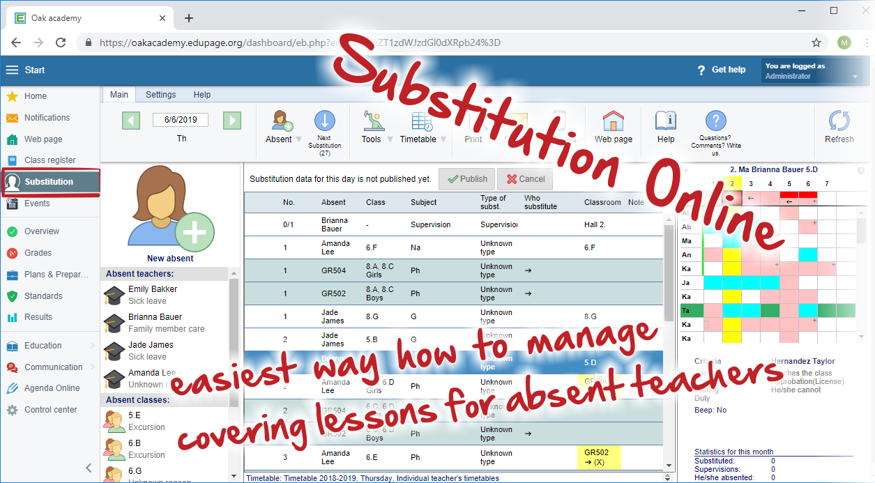 8. Substitutions online. The substitution online is now the preferred way to do the substitutions. It already has more features than the windows version. Plus - it is much safer to use (automatic backups on more computers), you can immediately notify the teachers or students, more people can work at the same time, access from home or any pc in the school etc. See all the new features in the substitutions online here.