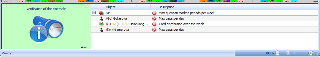 The verification now groups the items in case there are many similar problems. You can also sort by teacher/class.