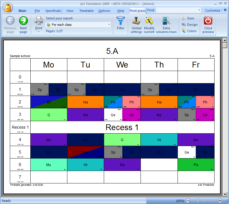 The print preview section has changed, shall be now more straightforward to customize your printouts. This allow you to quickly define colors, sizes of timetables and new features like Extra columns and headers that can provide your custom information for each row/column in your timetable