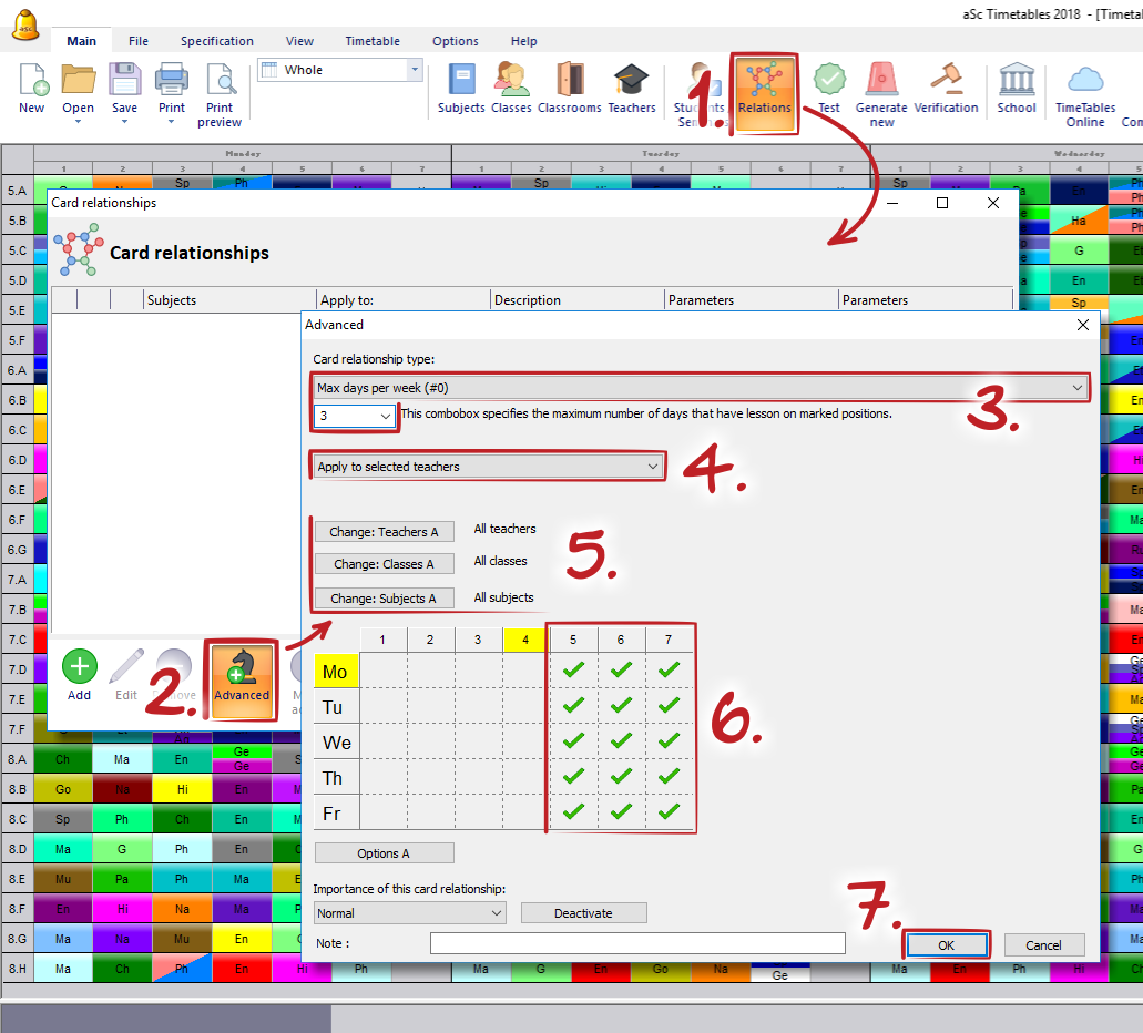 Basically it says, teacher can have max 3 days with lessons on the positions marked on the time map. Make sure you input correctly all the marked entries.