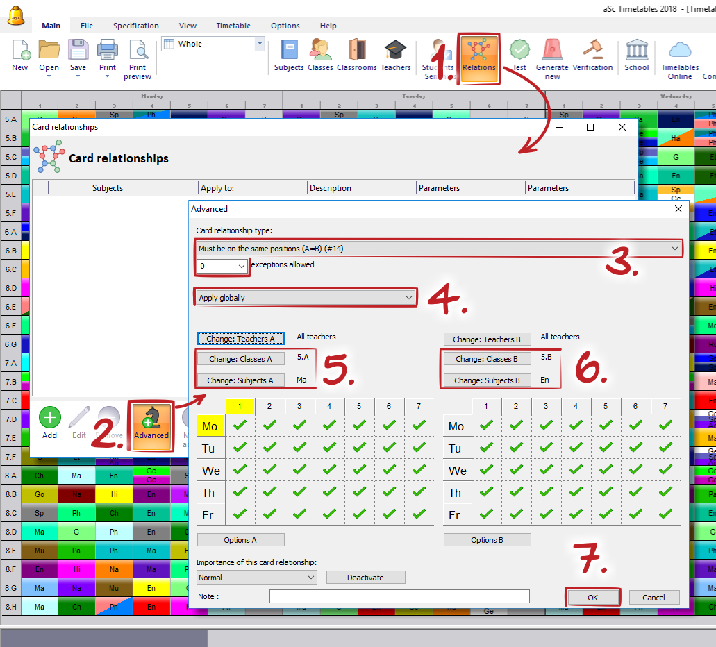 Question: I want to have Math lessons in 5.A on the same postions as English lessons in 5.B
