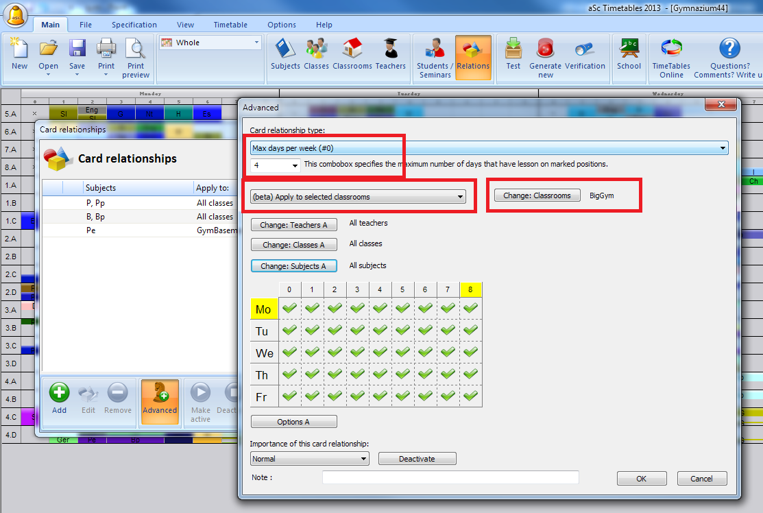 So you can specify for example max 2 on afternoon lesson, this would mean that the classroom is free on 3 afternoons per week.