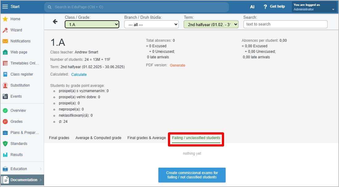 An overview of all failing and unclassified students across the entire school will be displayed.