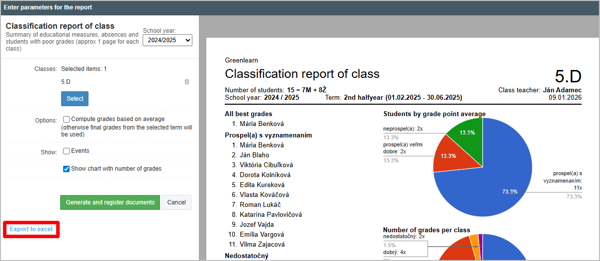 In the Grading Statistics module, you can find many different statistics by classes, students, study programs, types of study, and more.