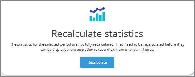 If the data in the statistics has not been recalculated for a longer period of time, the system will display a warning indicating that the statistics need to be recalculated.