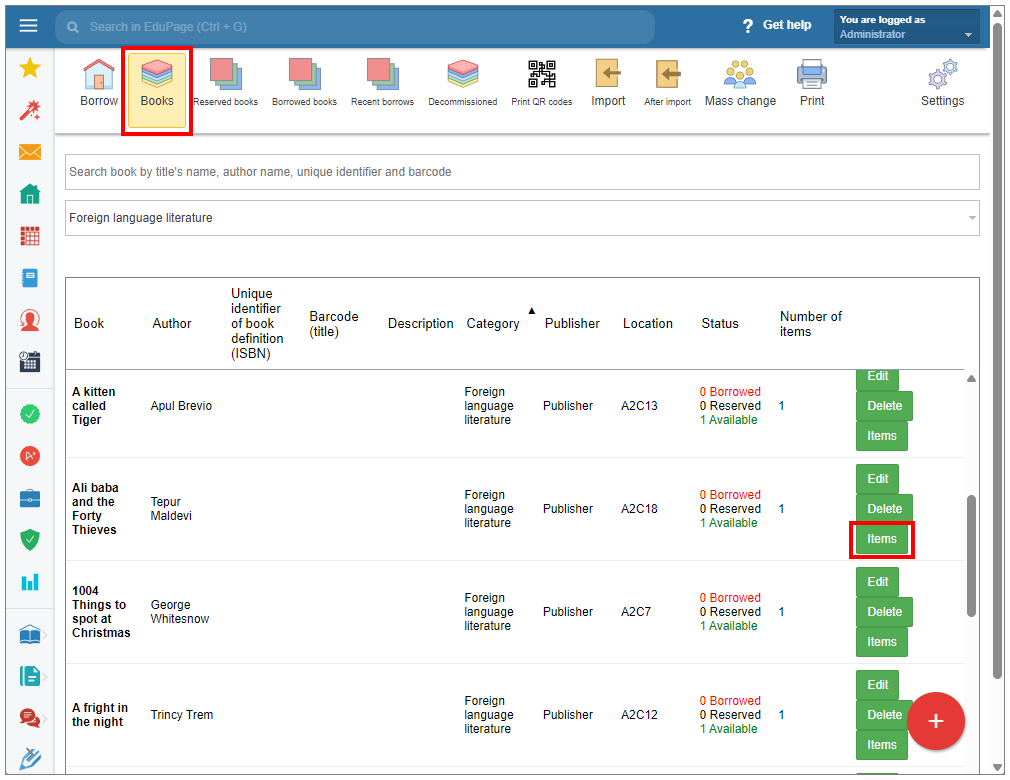 In the list of titles, click "Items" next to the desired title.