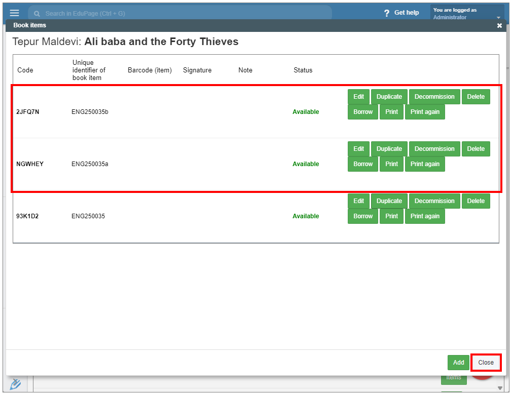 How to print QR codes for added books?