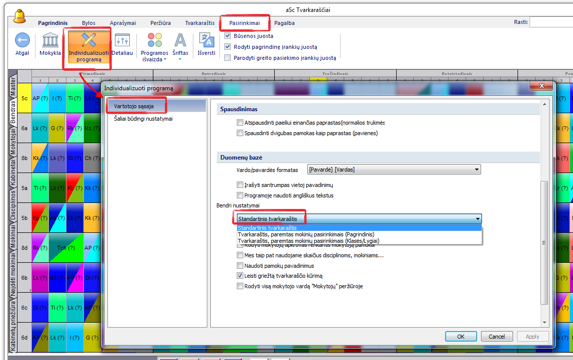 Reikia pakeisti, kad tvarkaraštis būtų rodomas kaip "Standartinis"