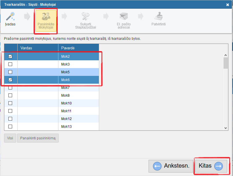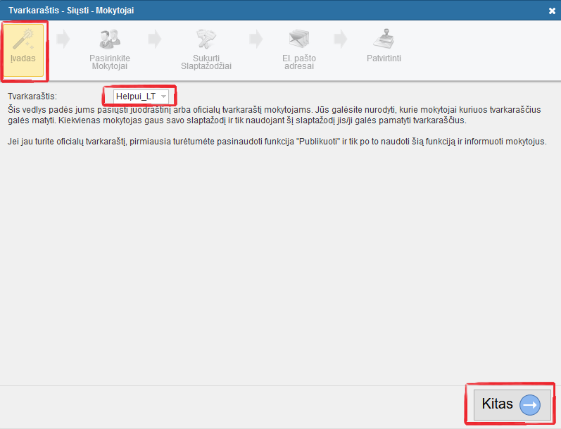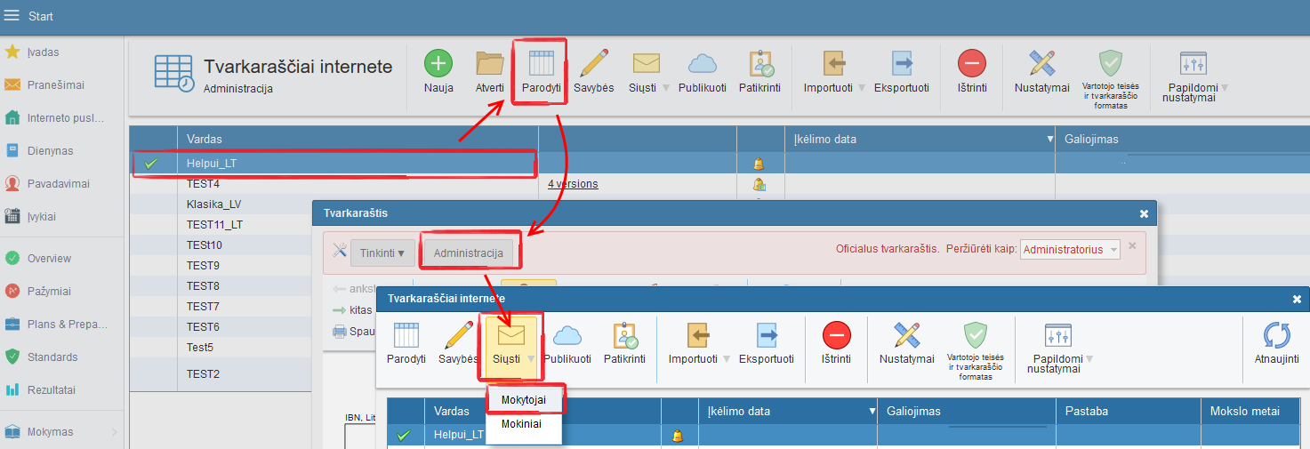 Kaip pasiųsti tvarkaraštį mokytojams