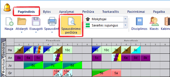 Kaip atspausdinti tvarkaraščius atskiriems mokiniams?