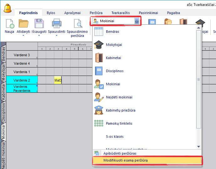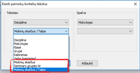 Kaip padaryti, kad ant pamokų kortelių būtų rodoma pamokos talpa ir mokinių skaičius?