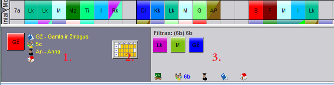 2 - Paspaudus šį langelį, galima pasižiūrėti mokytojo ar klasės tvarkaraštį.