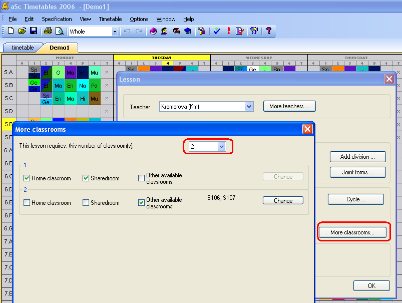 مثال 1: لدي درس أنجليزي يتضمن عدد 2 فصول وعدد 2 مدرسين مشتركين, ولكني اريدهما للحصول على غرفتين موزعتين .