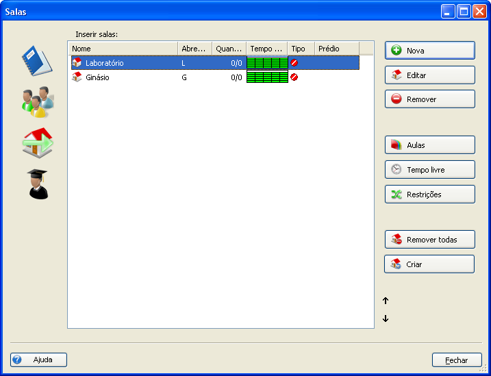 Teoricamente as salas podem ser omitidas e você pode criar um horário sem inserir qualquer sala de aula.