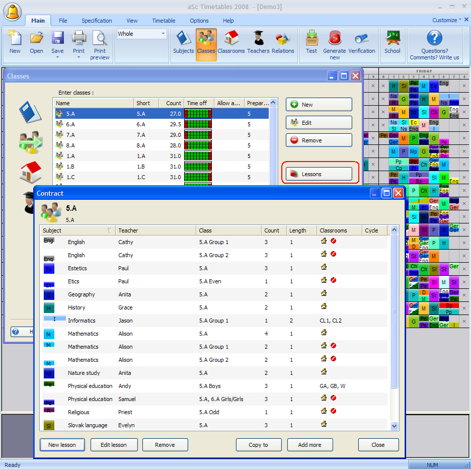 על ידי לחיצה על שיעורים ... אתה יכול להציג שיעורי שהוקצו לכיתה.