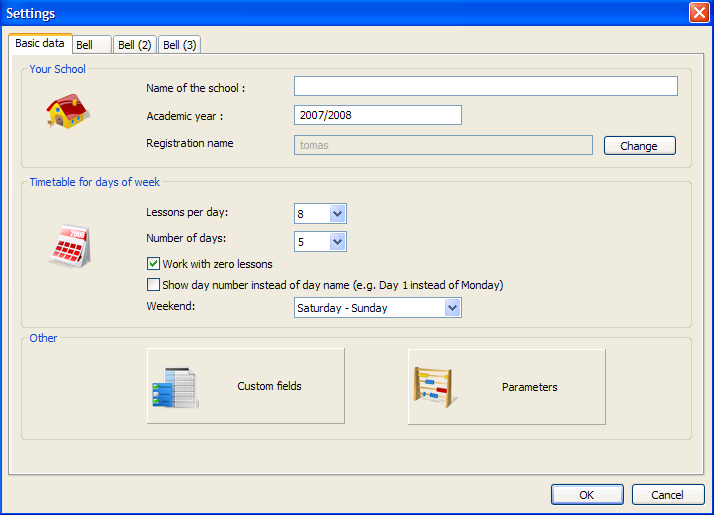 Note 2 - Your registration number is connected with your school's name, therefore if it changes, the program will be automatically closed. On the next run it is then necessary to enter the original name of the school and the registration number, or enter a new name of the school and register the program again.