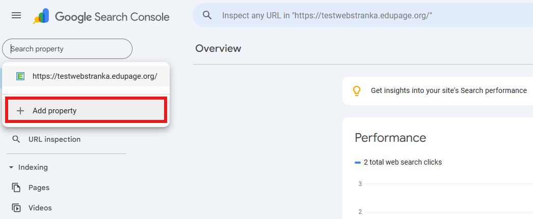 Skopírujte URL adresu vašej stránky z EduPage a vložte ju do novootvoreného okna google konzoly.