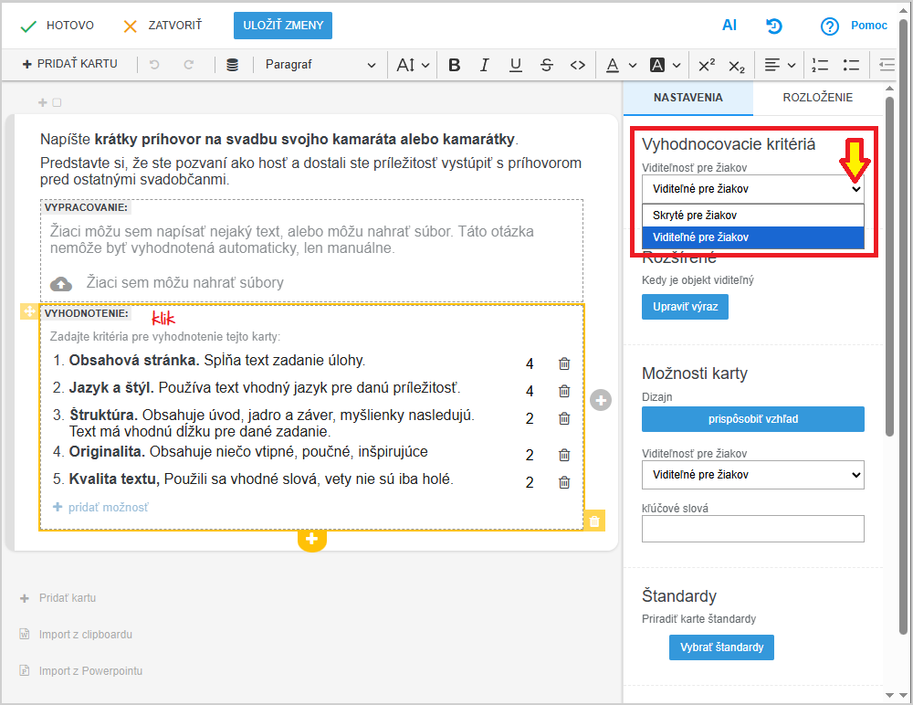 Viem žiakom dopredu zverejniť kritériá hodnotenia odovzdanej úlohy?