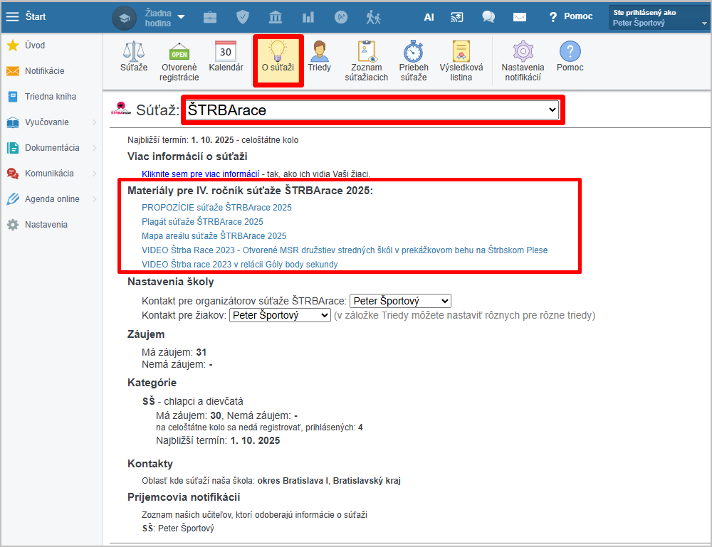 V časti "O súťaži", po výbere konkrétnej súťaže, nájdete všetky potrebné dokumenty k účasti v súťaži: