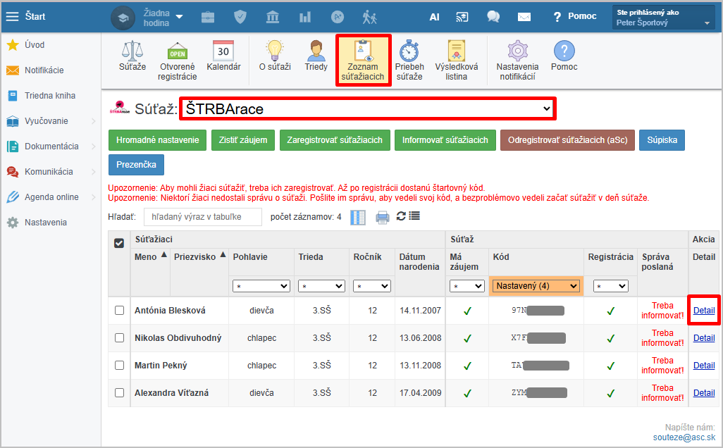 V module Súťaže v hornom menu vyberte Zoznam súťažiacich.