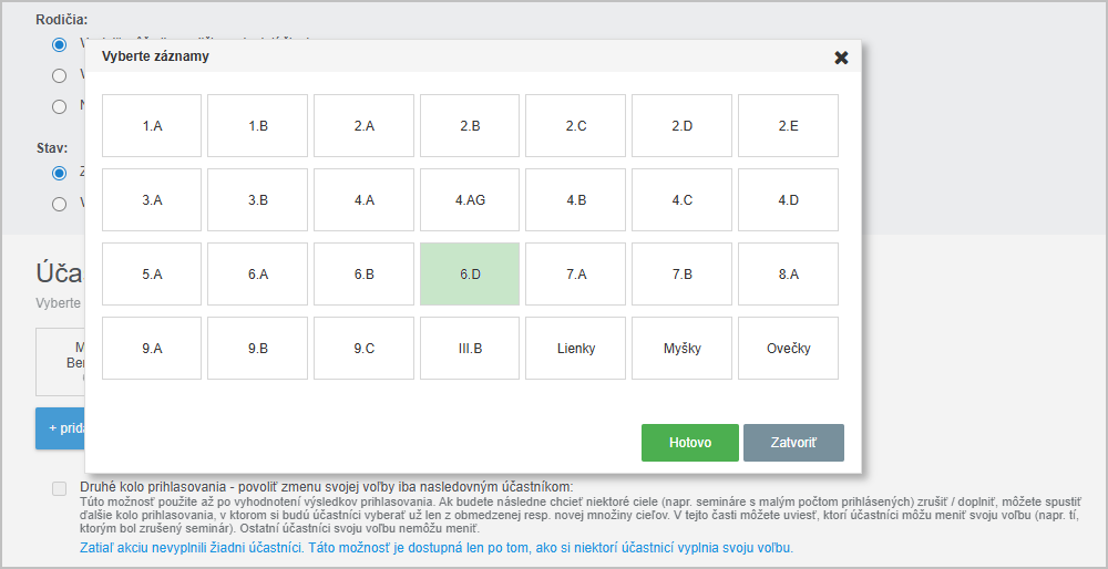 Ak chcete pridať rodičov z inej triedy, opäť zvoľte "+pridať žiakov". Vyberte ďalšiu triedu a postupujte podobne.