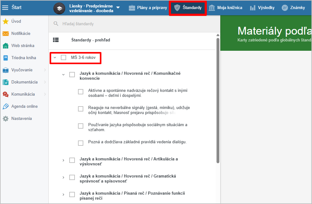 Štandardy môžete použiť na kategorizovanie svojich príprav. Taktiež sa prostredníctvom štandardov dajú zdieľať materiály medzi učiteľmi.