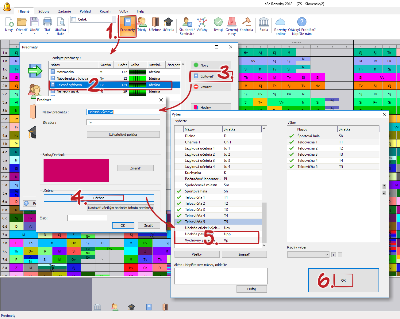 1. Zakaždým po pridaní novej hodiny, program vyplní učebne, podľa zadaného predmetu a tak vám ušetrí námahu počas zadávania. Samozrejme, vždy je možné učebne zmeniť, ak to niektorá hodina vyžaduje.