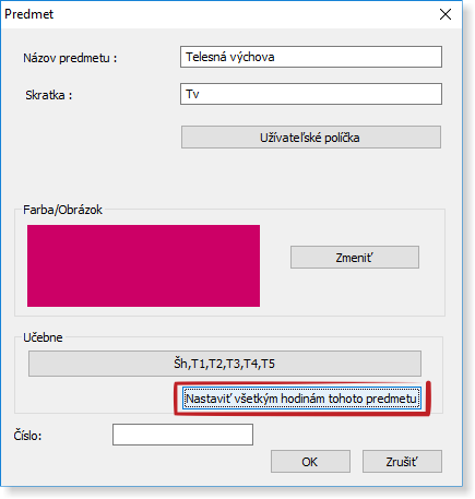 2. Druhou možnosťou je použiť tlačítko 'Nastaviť všetkým hodinám tohto predmetu'.