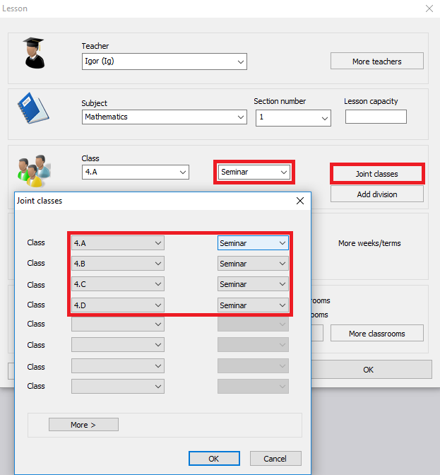 Po zadaní seminárových hodín je ešte nutné priradiť žiakov k seminárom. Pozri tiež: