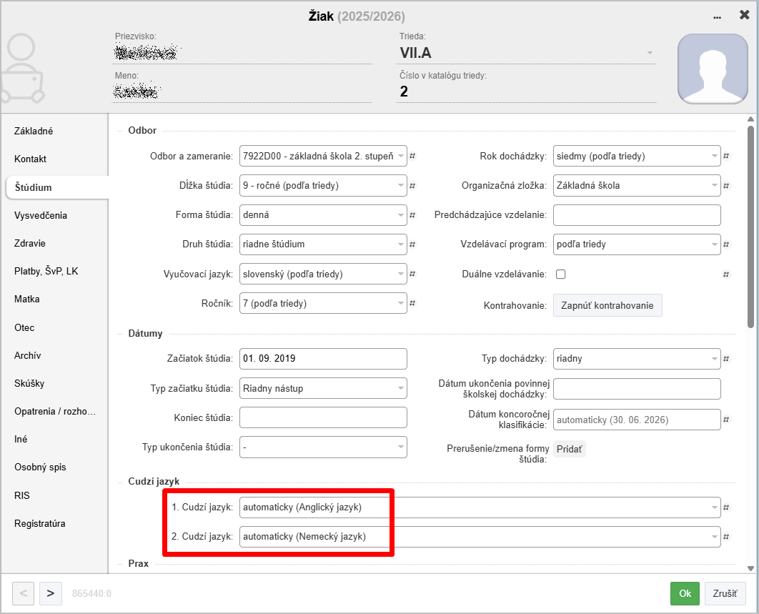Ak nemáte nastavené predmety na vysvedčení, štandardne je ako prvý cudzí jazyk nastavený anglický jazyk.