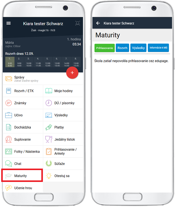 Tým, že študentov zaradíte do zoznamu maturantov v aktuálnom školskom roku, začne sa im v apke zobrazovať kachlička Maturity.