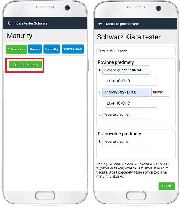 Ak v module Maturita - Prihlasovanie - Nastavenia zadáte dátumy Od - Do, študentom sa v danom období "otvorí" prihlasovanie na maturitné predmety.
