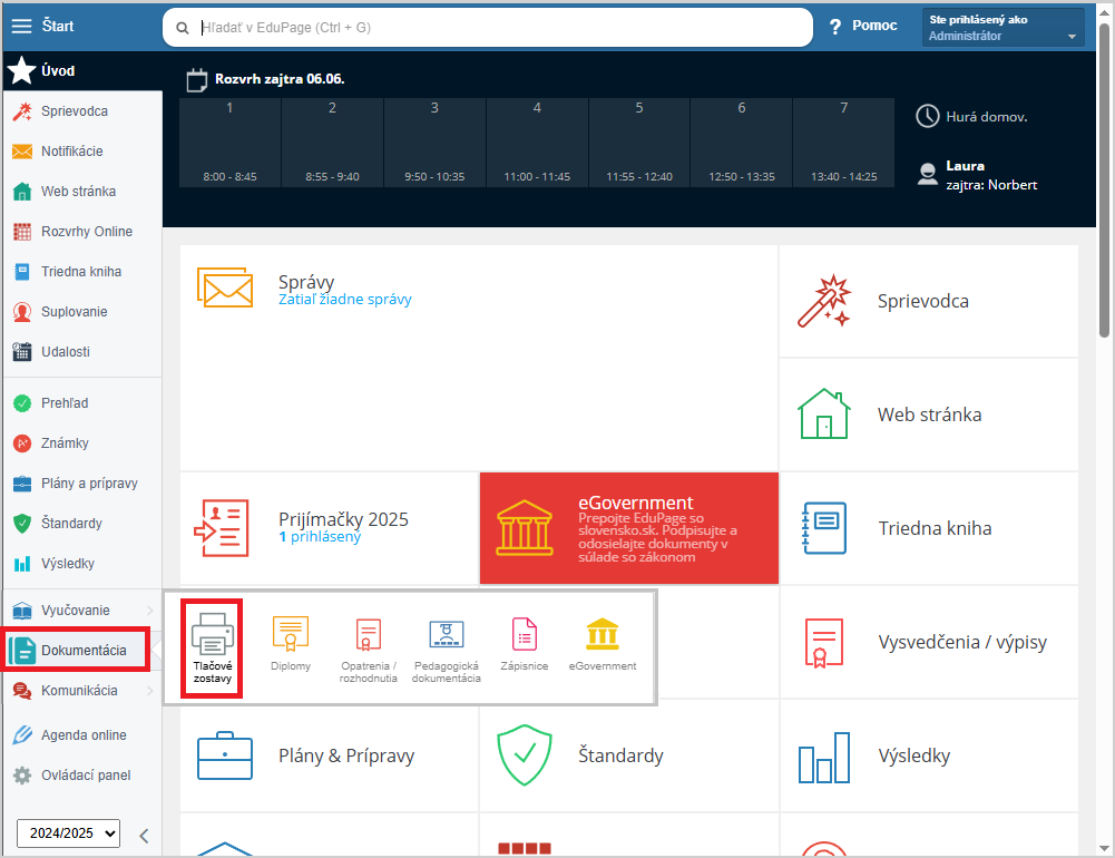 V ľavom menu vyberte Dokumentácia - Tlačové zostavy.