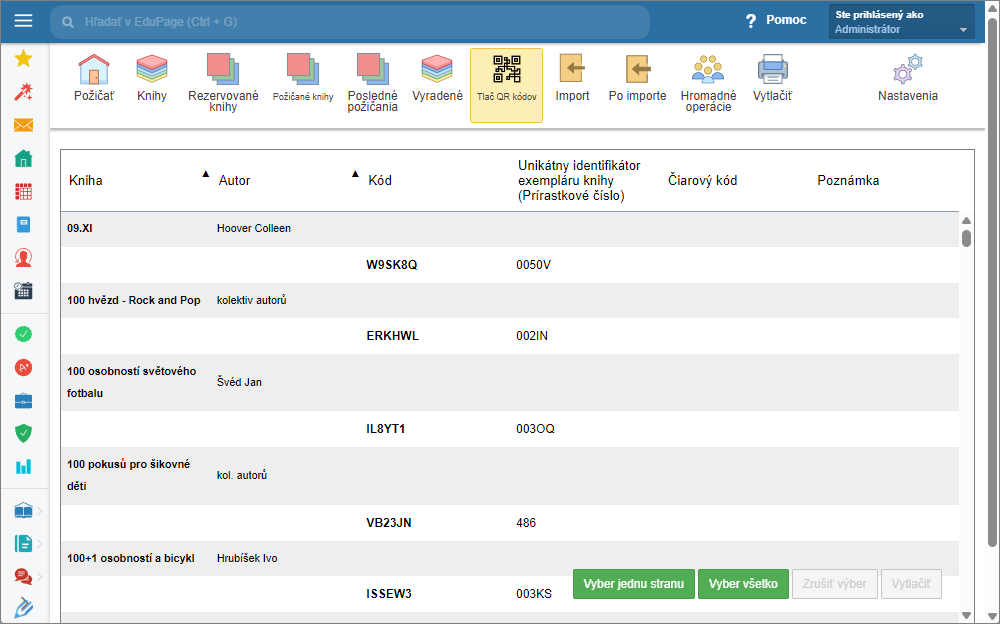 Hromadné operácie v module Knižnica / Sklad učebníc